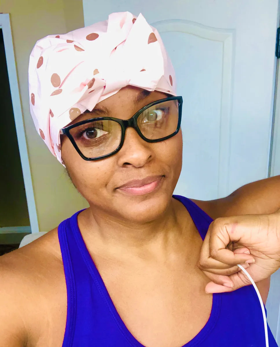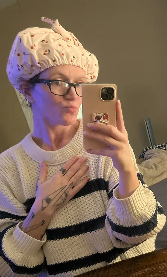 Soft, satin-lined, and designed for comfort, the Aloura PureSilk™ Shower Cap protects your hair from water and frizz without feeling tight. It stays in place and helps preserve your style between wash days.